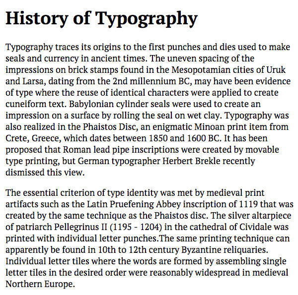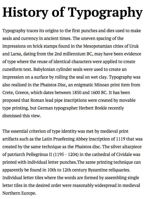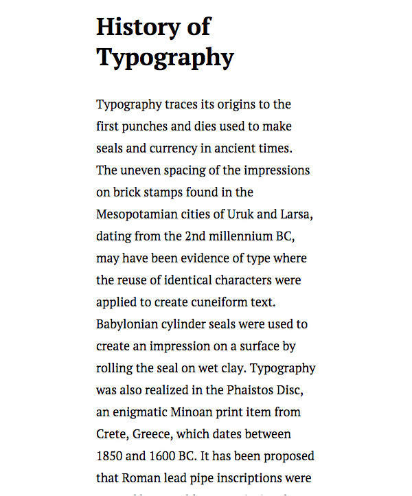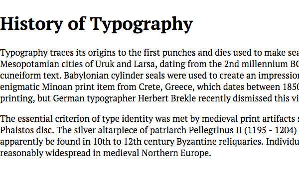這看起來很簡陋,而且難以閱讀。上面的這張截圖顯示的是瀏覽器默認(rèn)的16px Times New Roman字體。既然這樣,我們就先試試看把它升級到18px的PT Serif字體。