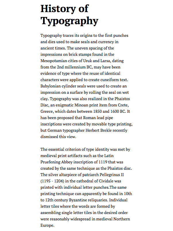 摘要:排版是設(shè)計中非常基礎(chǔ)但又無比重要的一環(huán),這點我想大家都認(rèn)同。在網(wǎng)頁設(shè)計中,排版早些年的日子比較苦逼,或者說其很難得到與之重要性相匹配的待遇——和很多其它的設(shè)計元素一樣,那時我們并不具備在網(wǎng)頁中完整表現(xiàn)它們的技術(shù)。但幸運的是,我們走過來了。